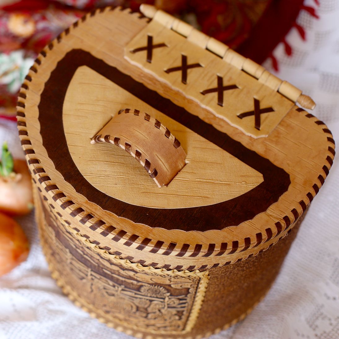 Короб из бересты – удобное и функциональное изделие, удивляющее своей природной красотой.