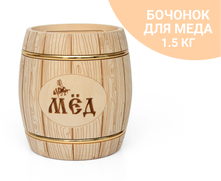 Бочонок для меда из липы светлый 1,5 кг