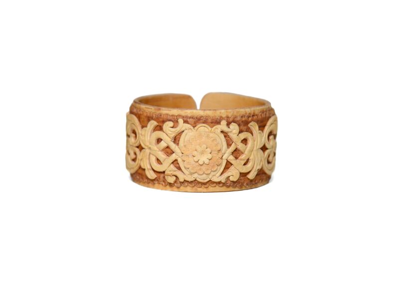 Браслет из бересты резной большой широкий "Узор" 3,5-4 см