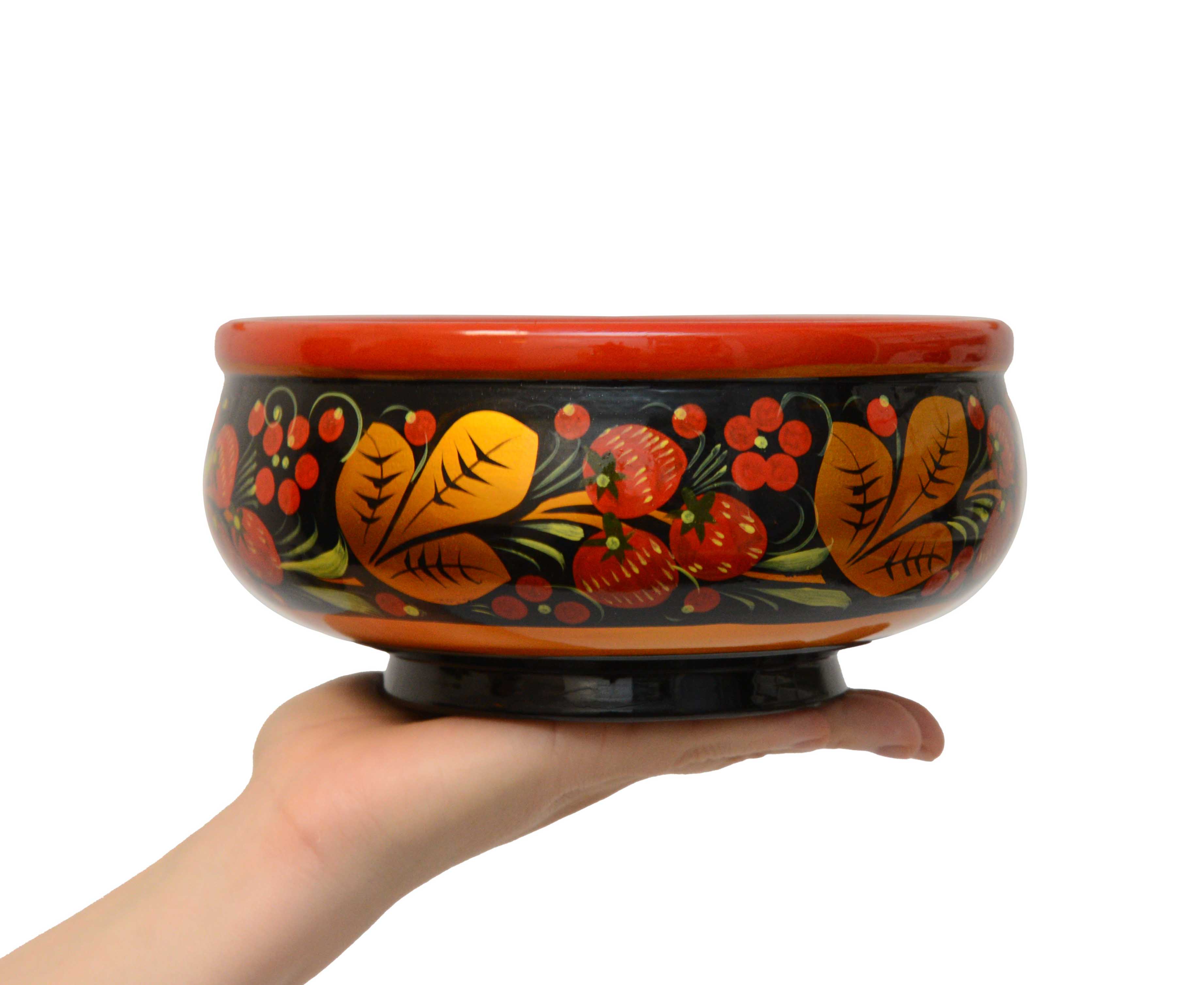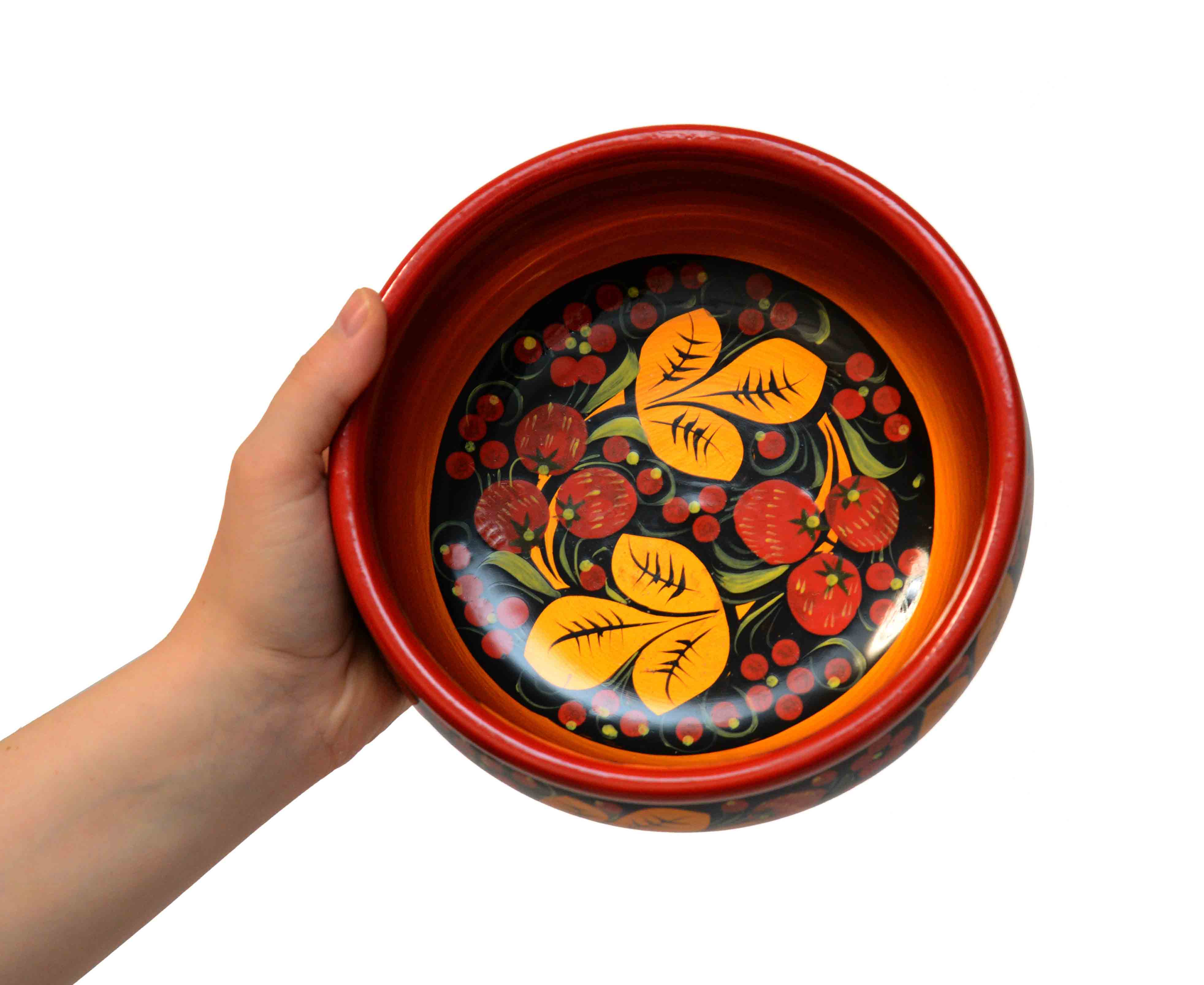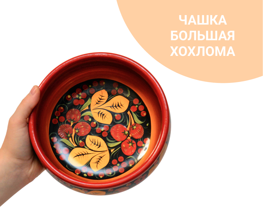 Чашка большая деревянная с хохломской росписью. Можно использовать для холодной или теплой еды. Отлично подойдет под окрошку.