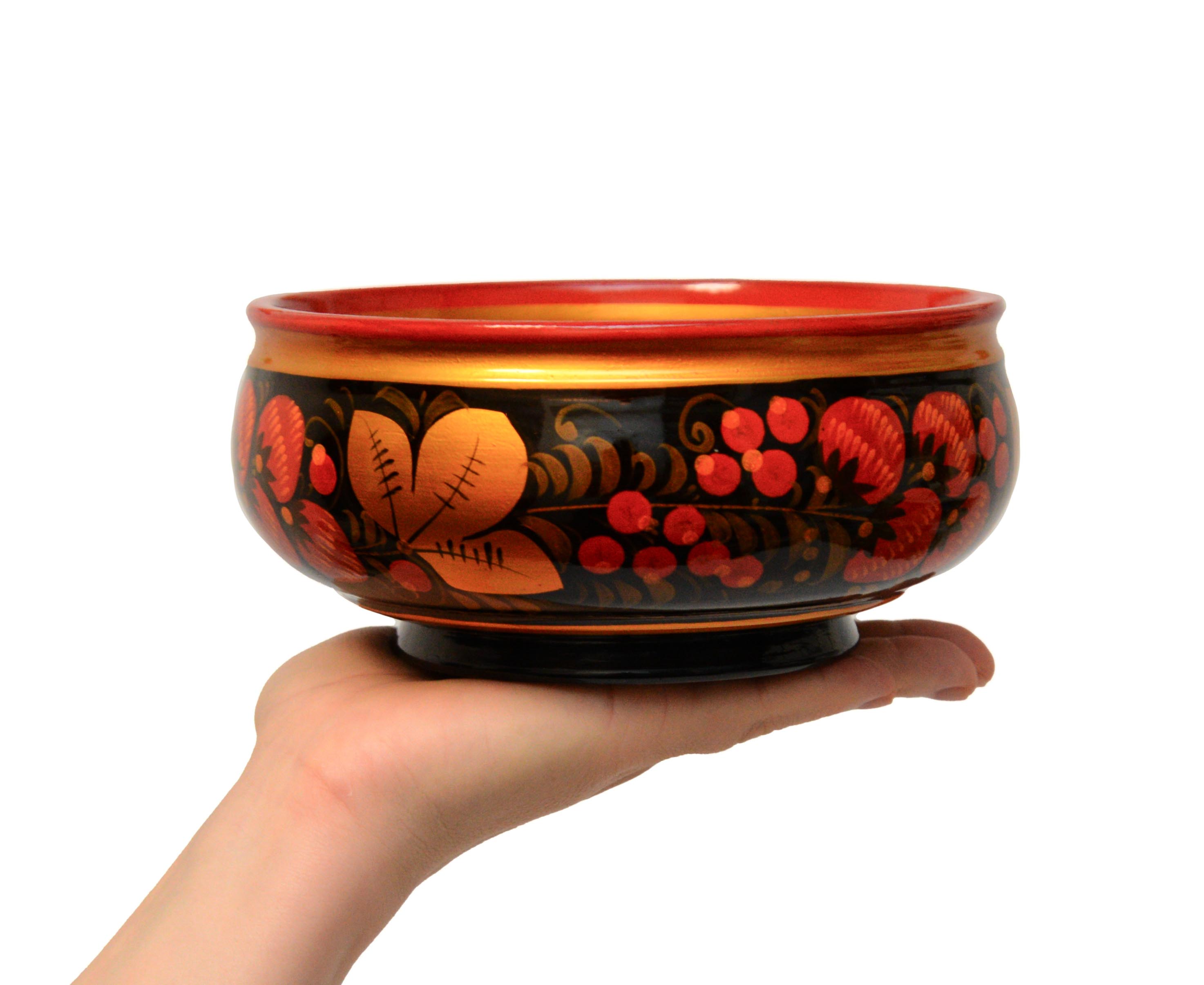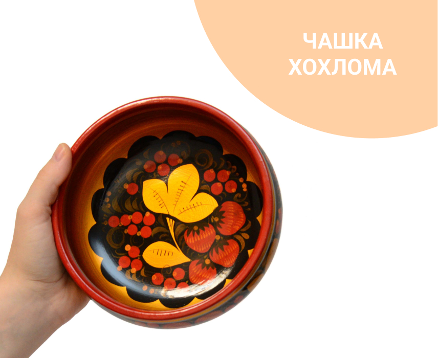 Чашка деревянная с хохломской росписью. Можно использовать для холодной или теплой еды. Отлично подойдет под окрошку.
