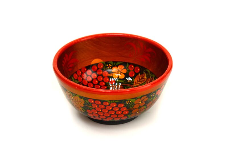 Чашка деревянная с хохломской росписью небольших размеров. Можно выкладывать горячую и холодную пищу. Использовать для конфет, сахара, варенья и т.д.