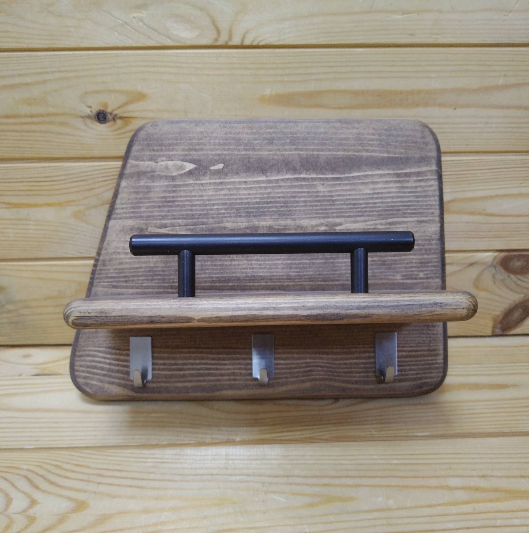 Ключница на стену деревянная с полкой большая