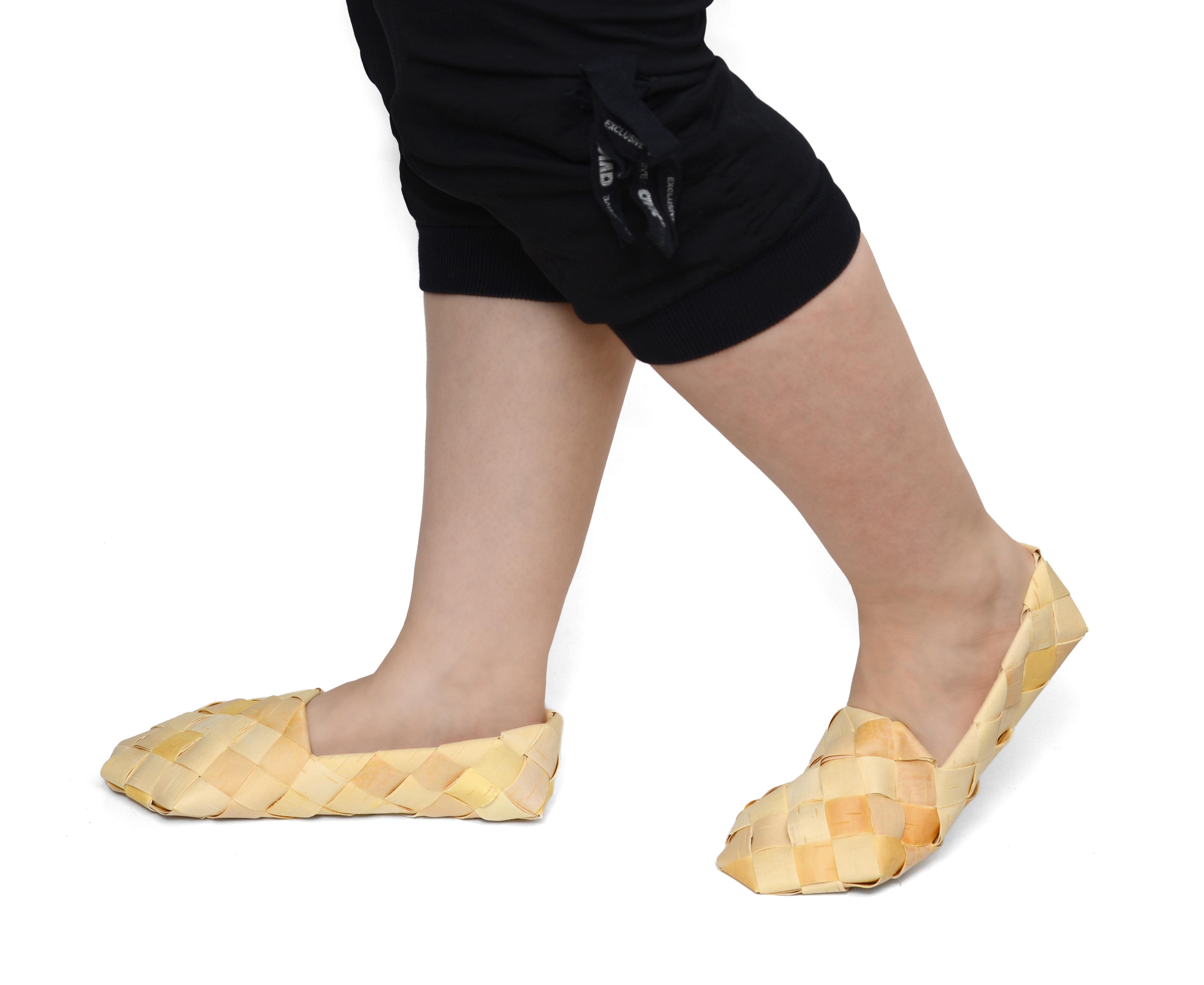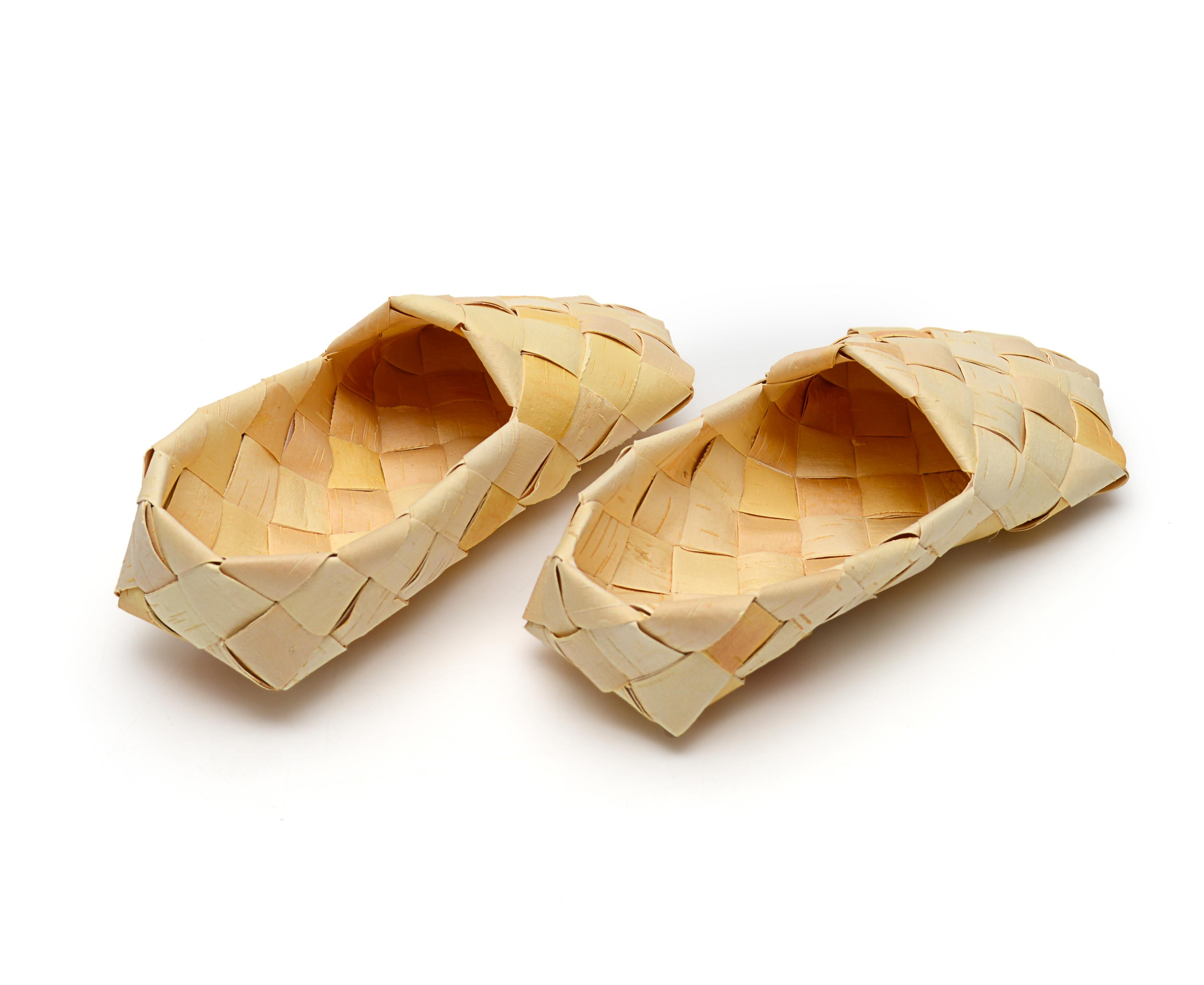 В лаптях из бересты можно ходить по дому, в баню и даже танцевать. Оказывают массажный эффект. В наличии есть как детские, так и взрослые размеры.