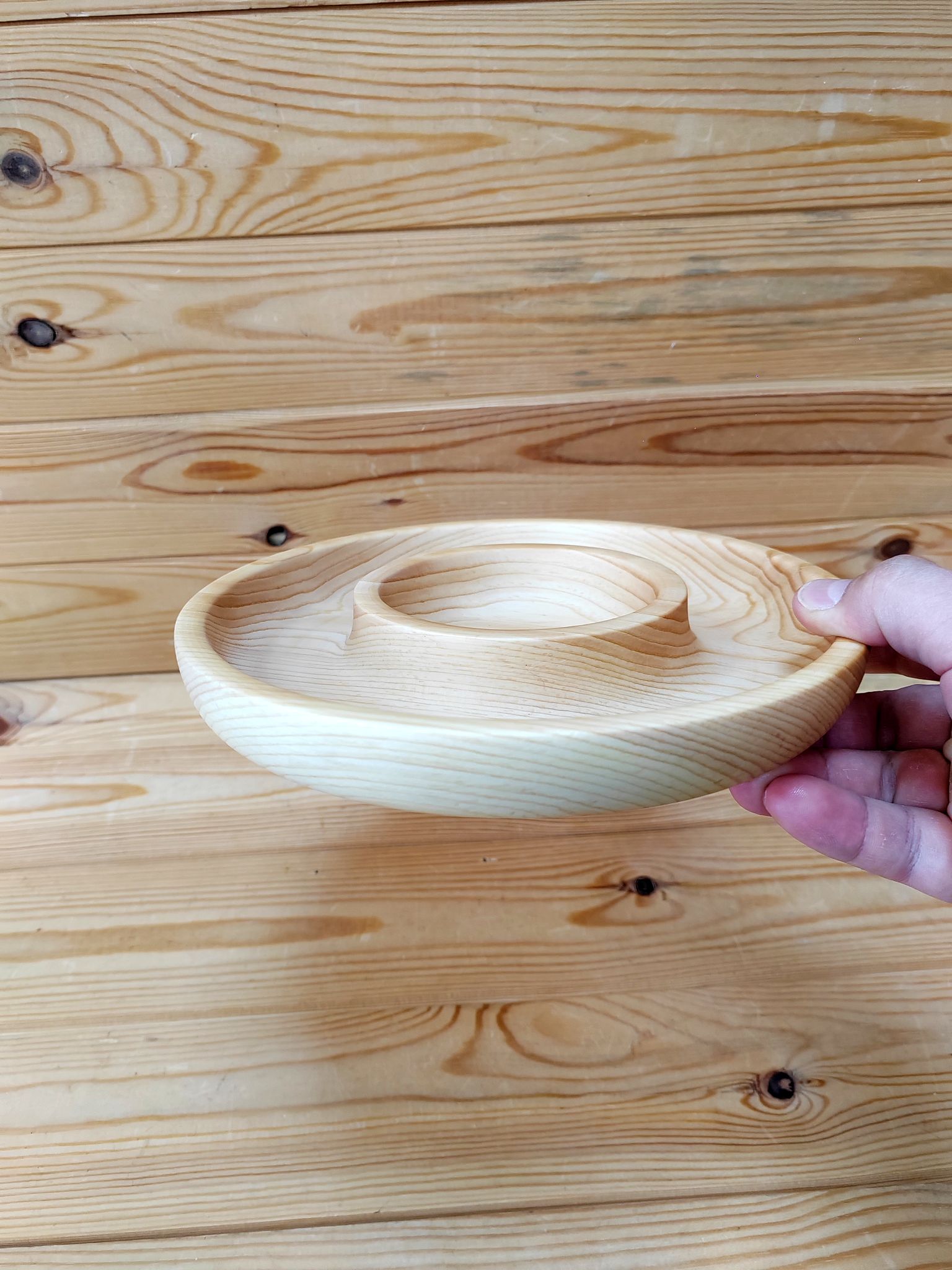 Менажница деревянная небольших размеров. Сделана из кедра. Можно выкладывать мандарины, орехи, конфеты, печенье.