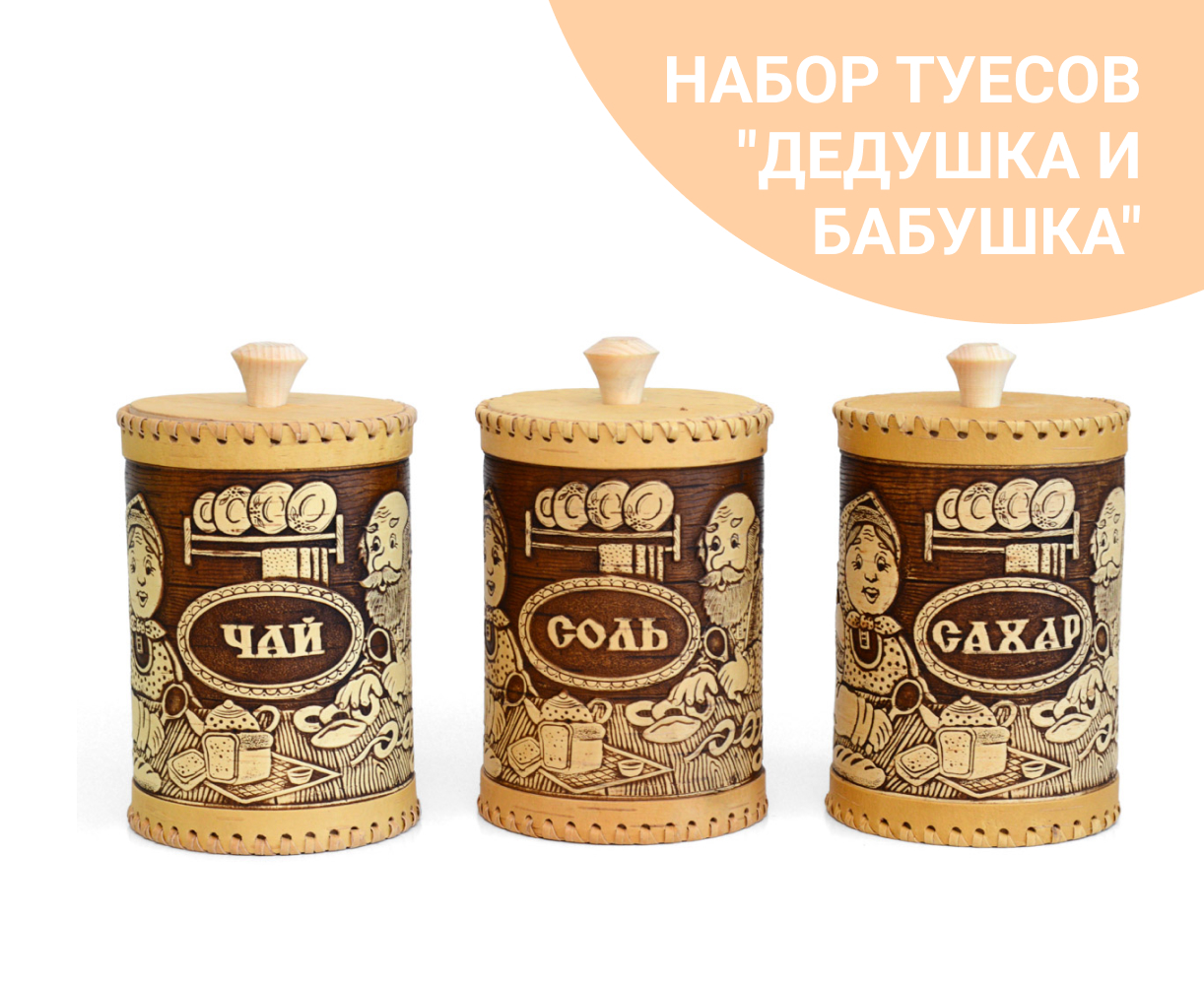 Набор туесов из бересты "Дедушка и бабушка" чай соль сахар