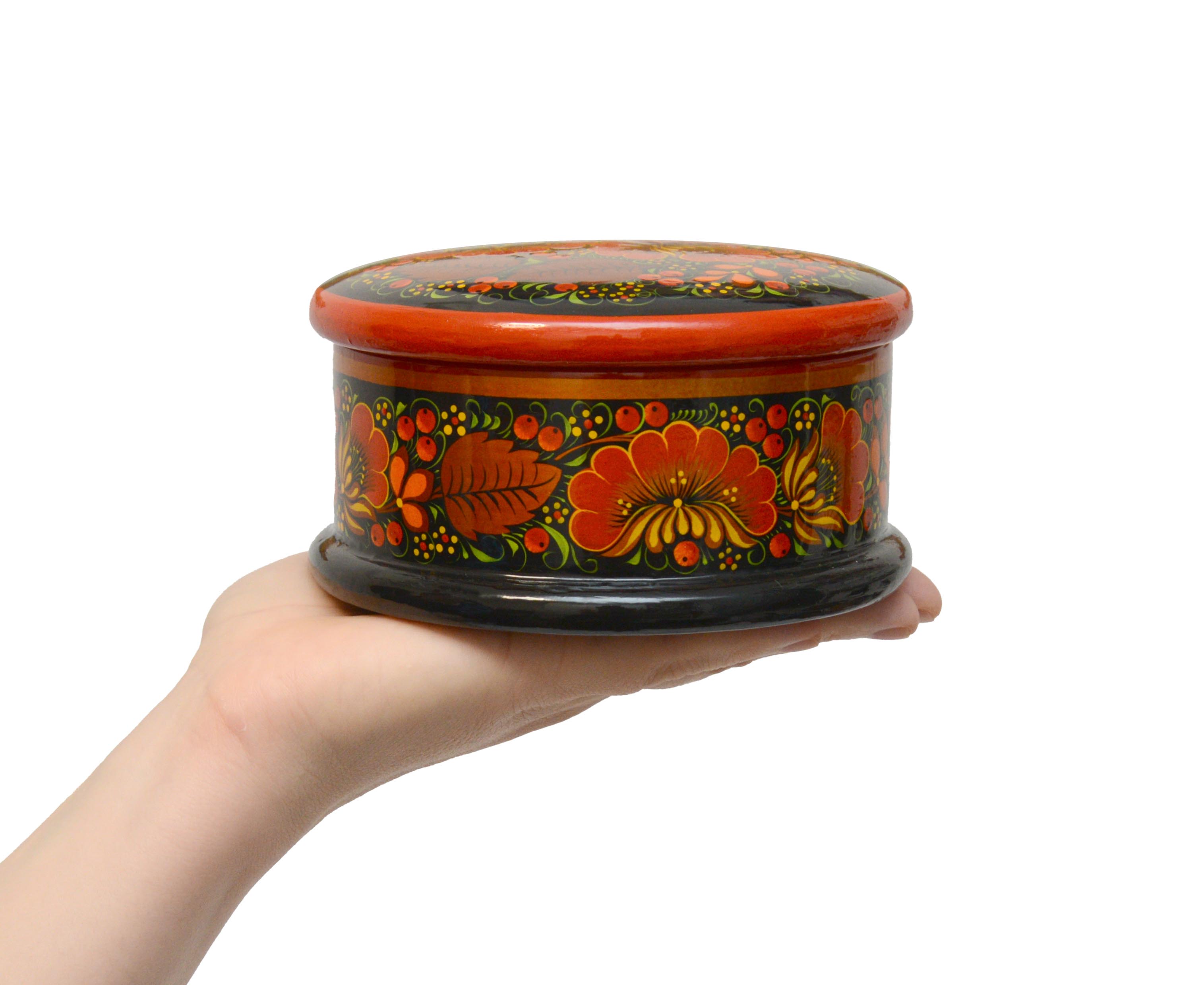 Красивая шкатулка с хохломской росписью. Выточена из цельного дерева - липа.
