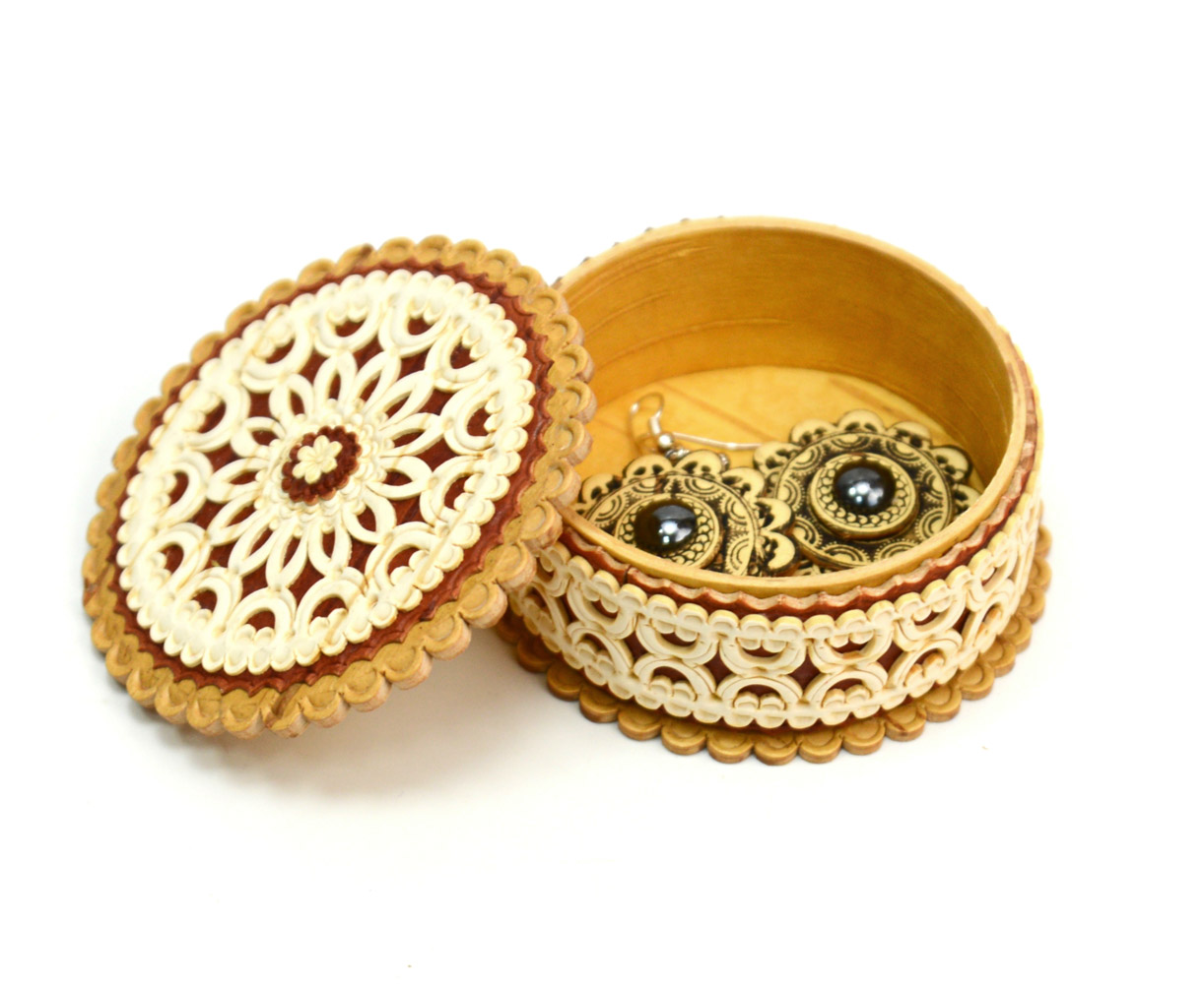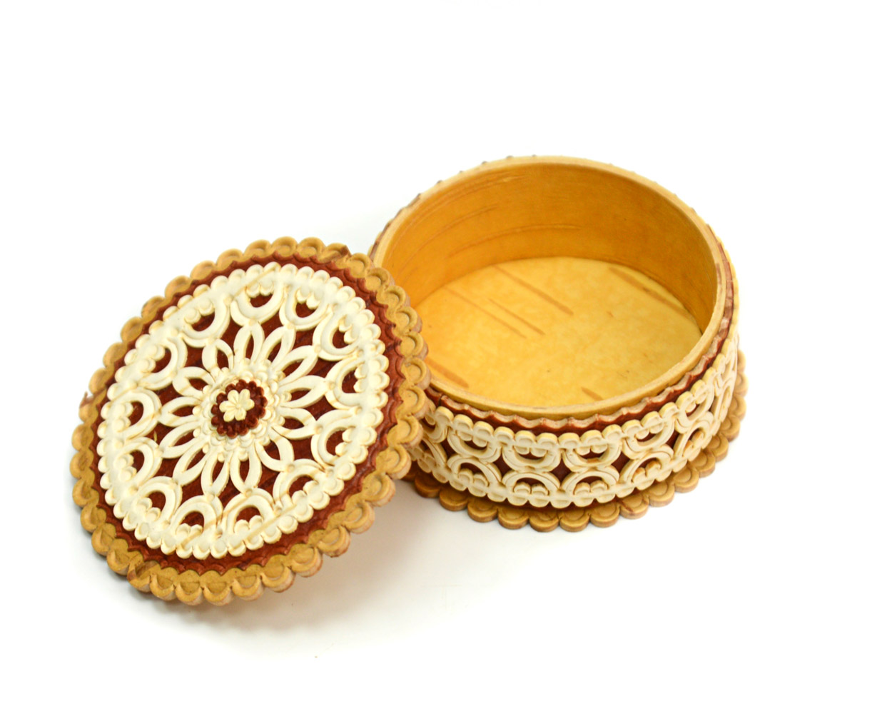 Шкатулка из бересты резная для колец "Жемчужина"