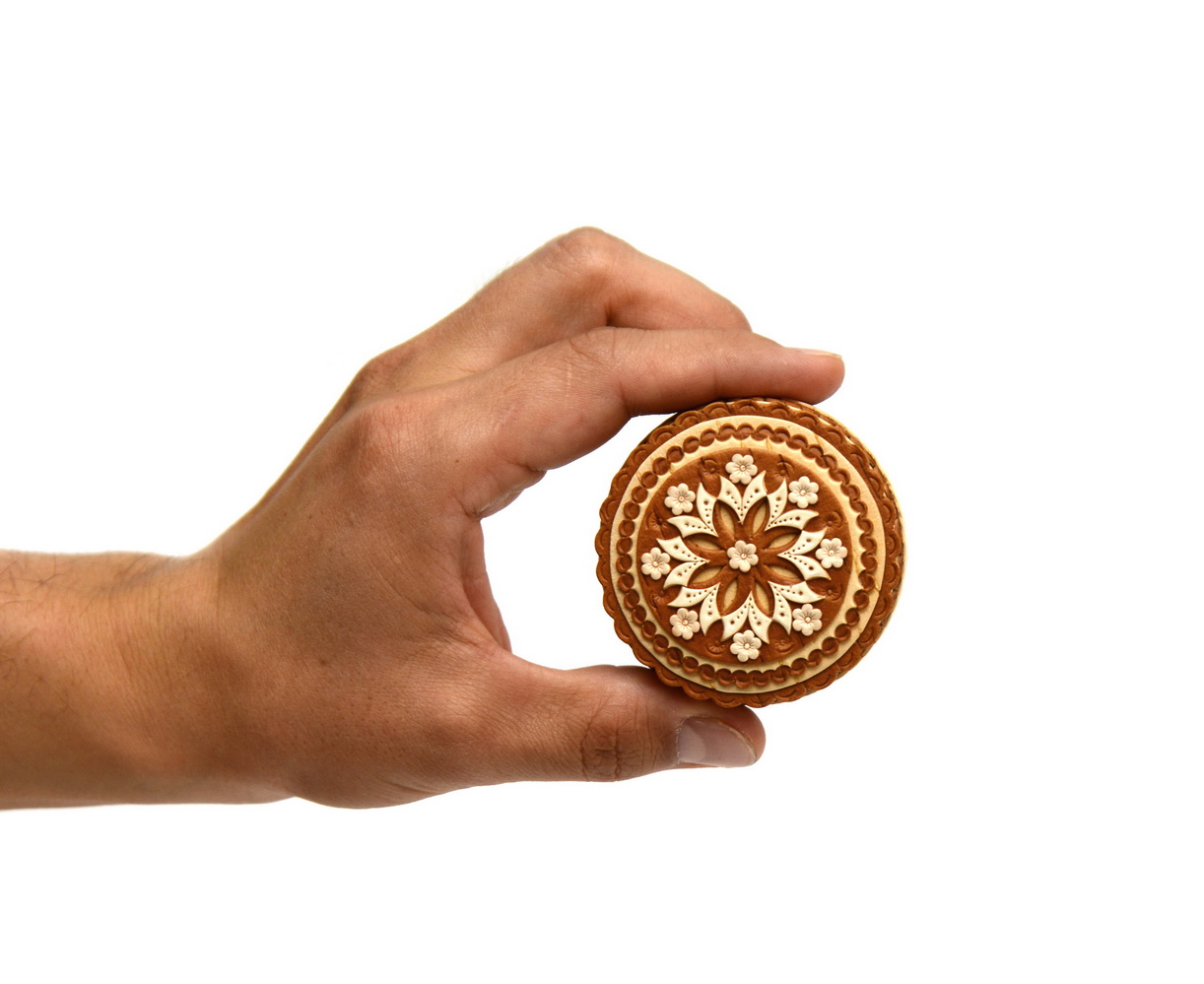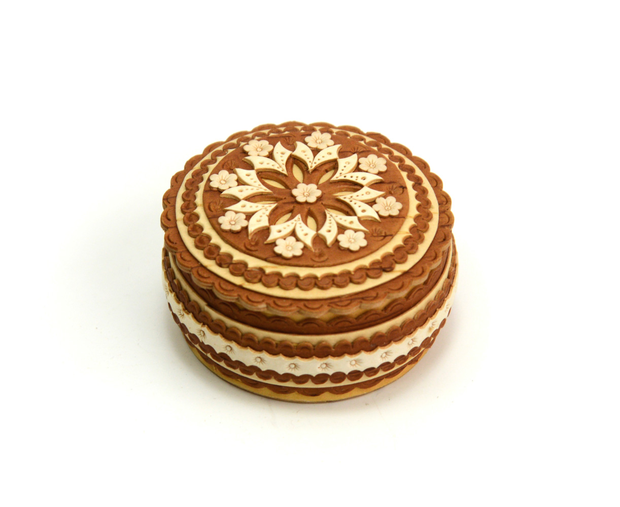 Шкатулка из бересты маленькая "Снежинка" D6,5 H3,5