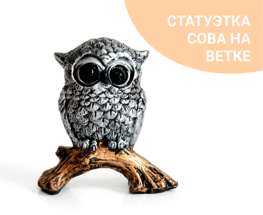 Статуэтка совы на ветке средних размеров из искусственного камня. Сова – символ мудрости и успеха.