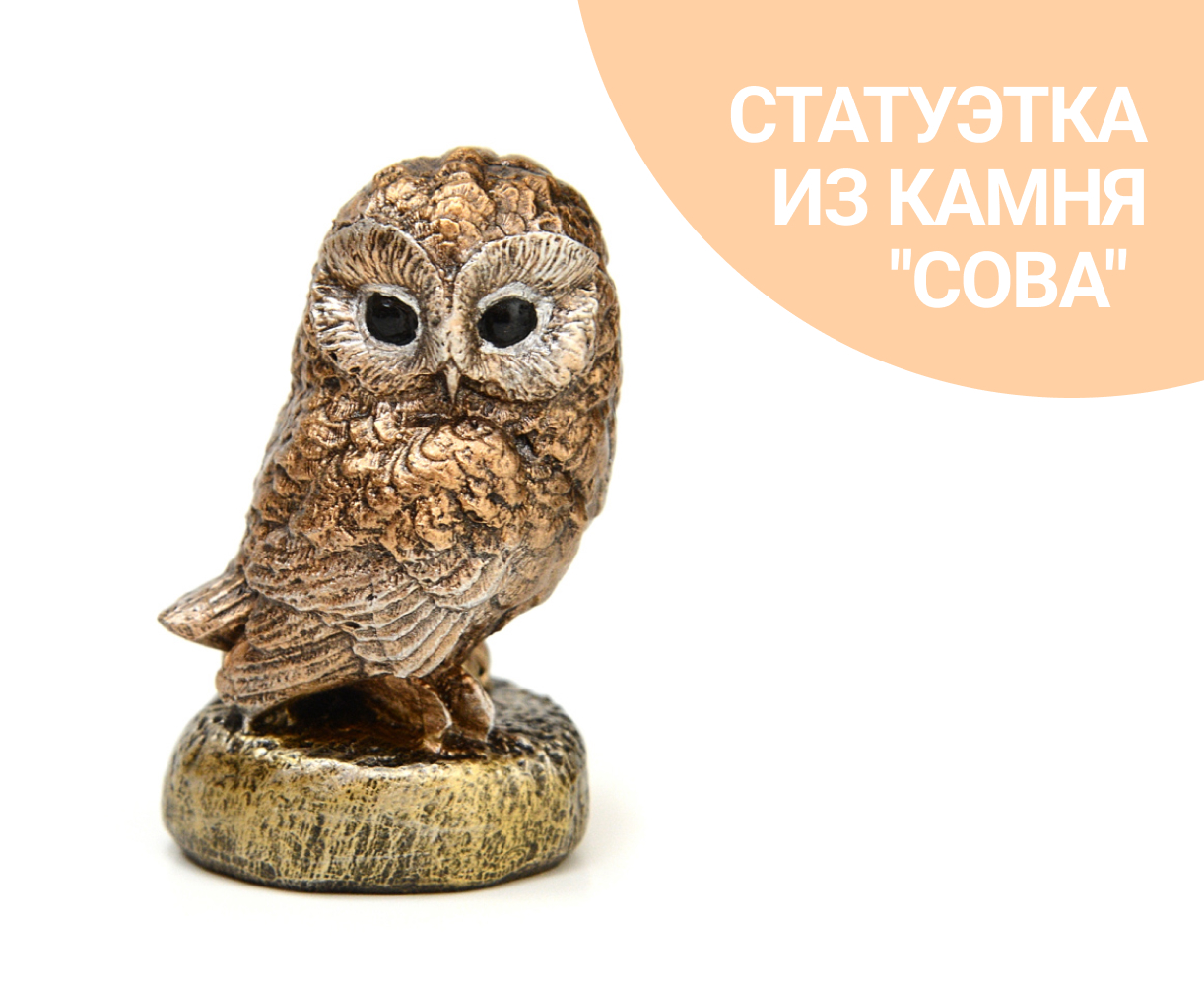 Статуэтка совы небольших размеров из искусственного камня. Сова – символ мудрости и успеха.