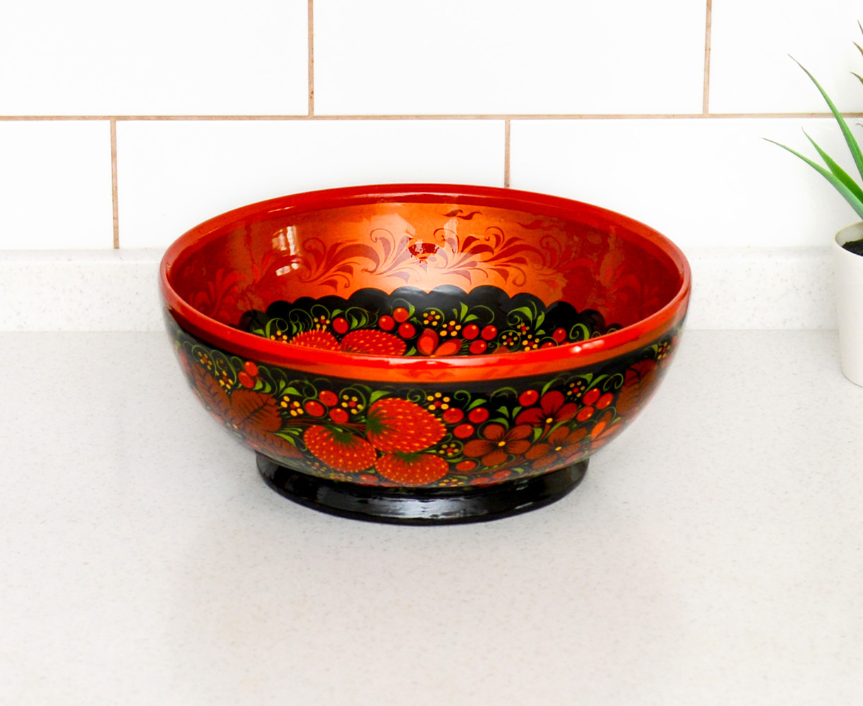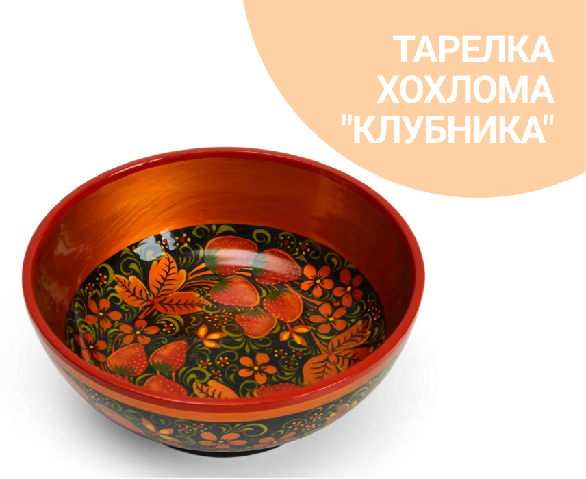 Тарелка деревянная глубокая хохлома "Клубника". Салатник. Сухарница