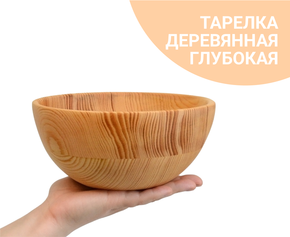 Тарелка деревянная большая глубокая. Очень вместительная. Сделана из кедра. Имеет скругленную форму. Пропитана льняным маслом для защиты от воды. Можно использовать как салатницу, фруктовницу, для подачи вторых блюд на стол. Отличная замена пластмассовым чашкам.