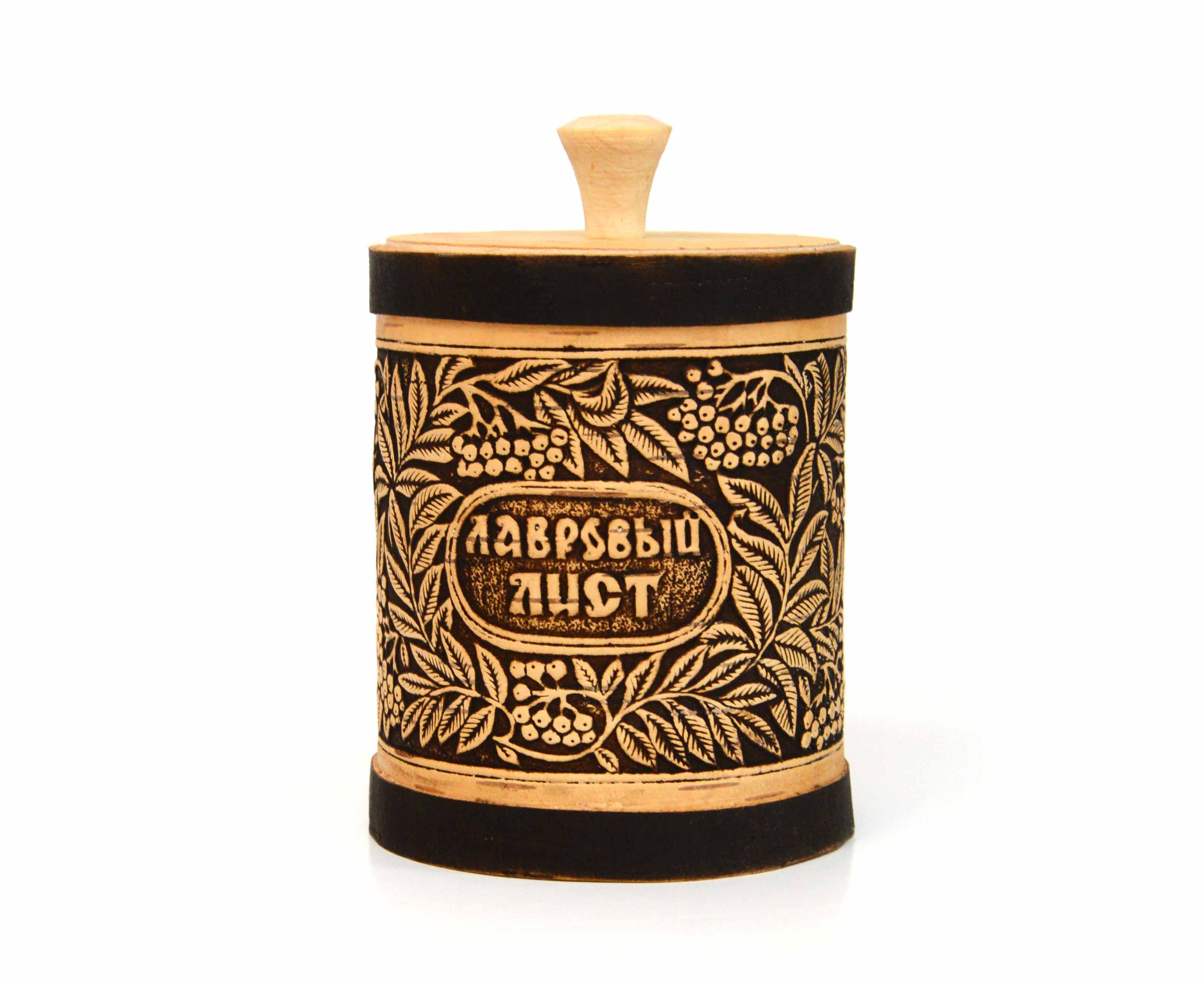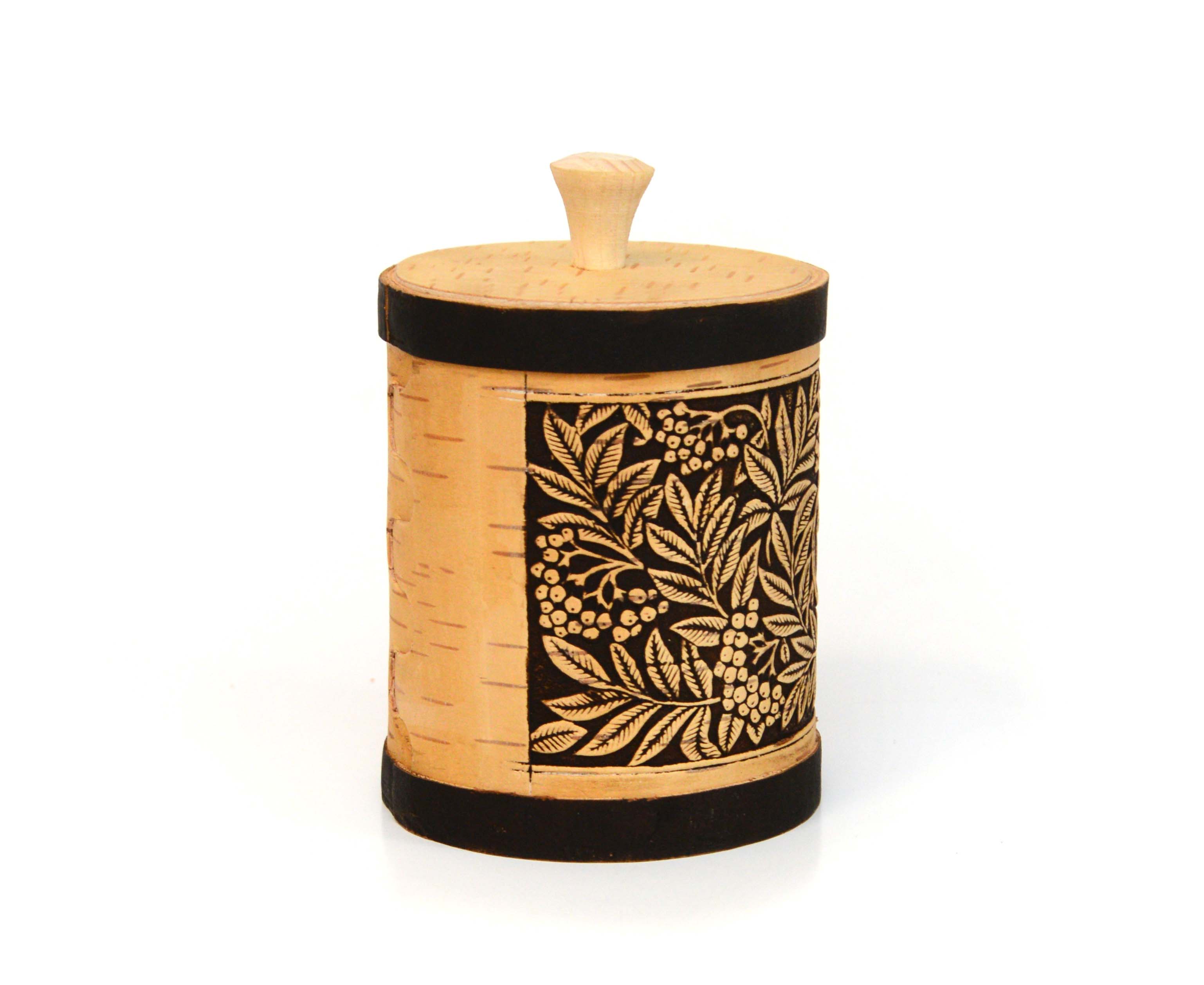Туес из бересты "Рябина - Лавровый лист" D10 H13