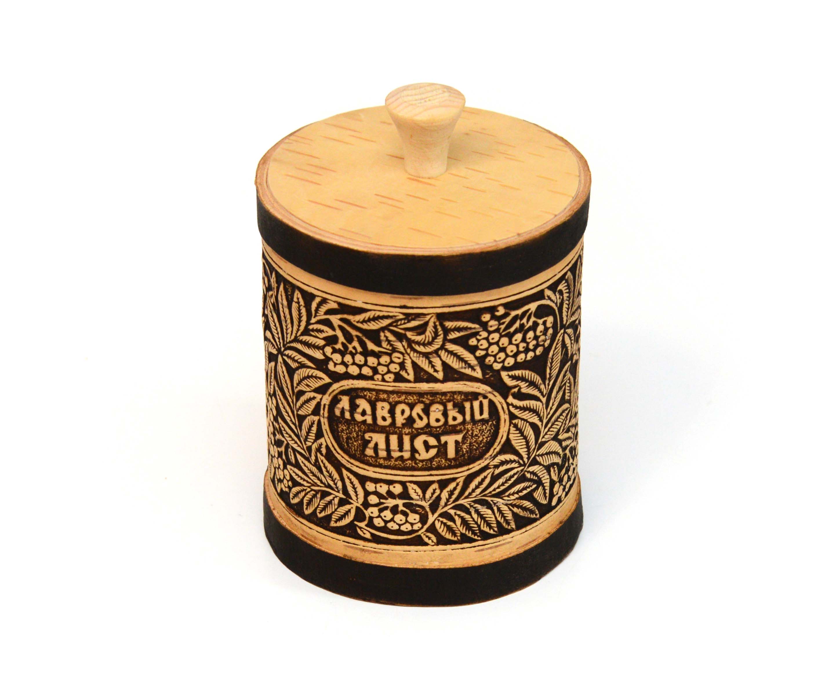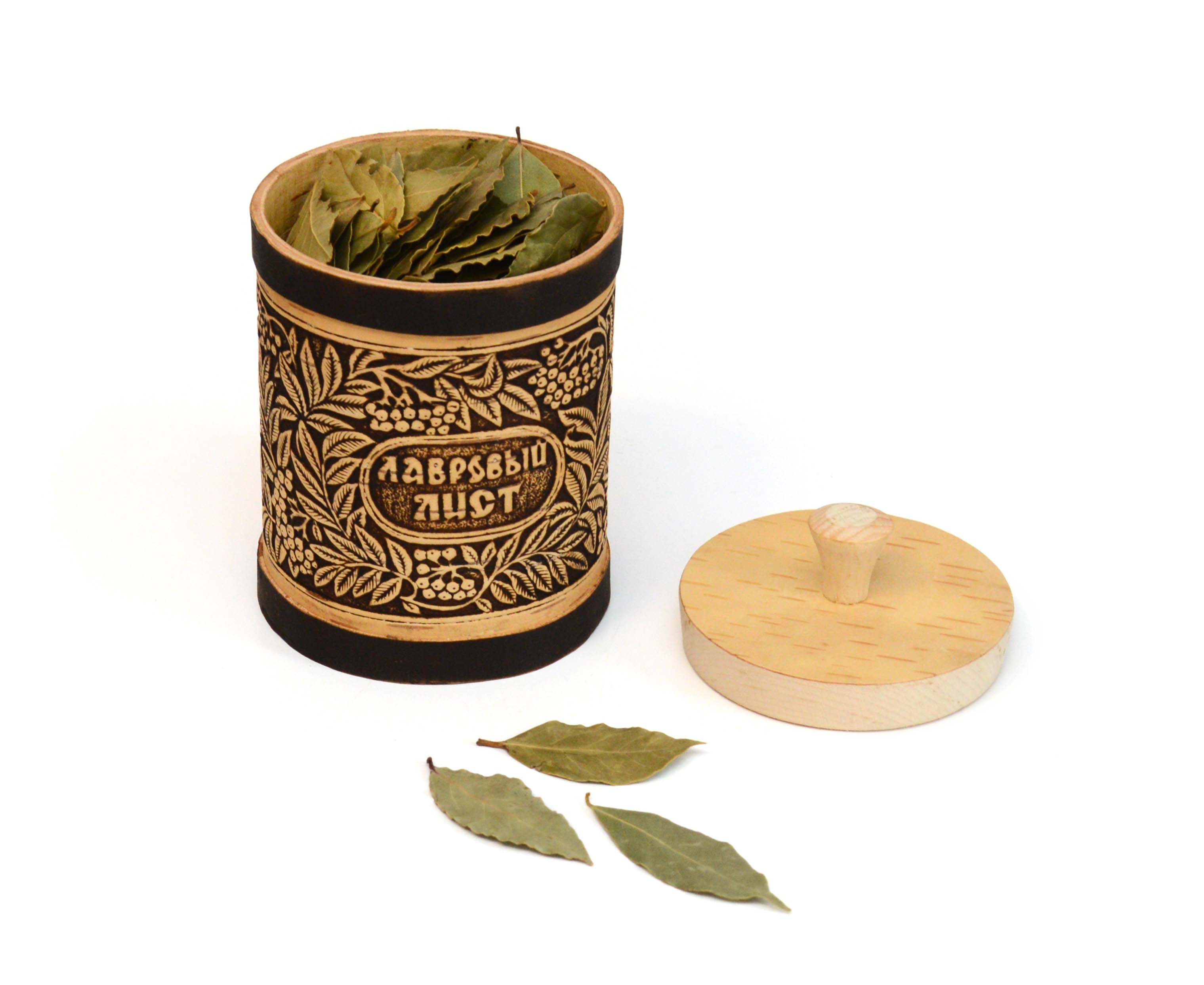 Туес из бересты с надписью "Лавровый лист". Станет прекрасной заменой стеклянным и пластмассовым баночкам для хранения. Сделан из экологически чистого материала. Имеет приятный аромат дерева. Пользоваться таким изделием одно удовольствие!