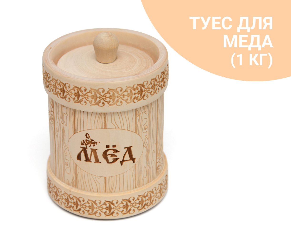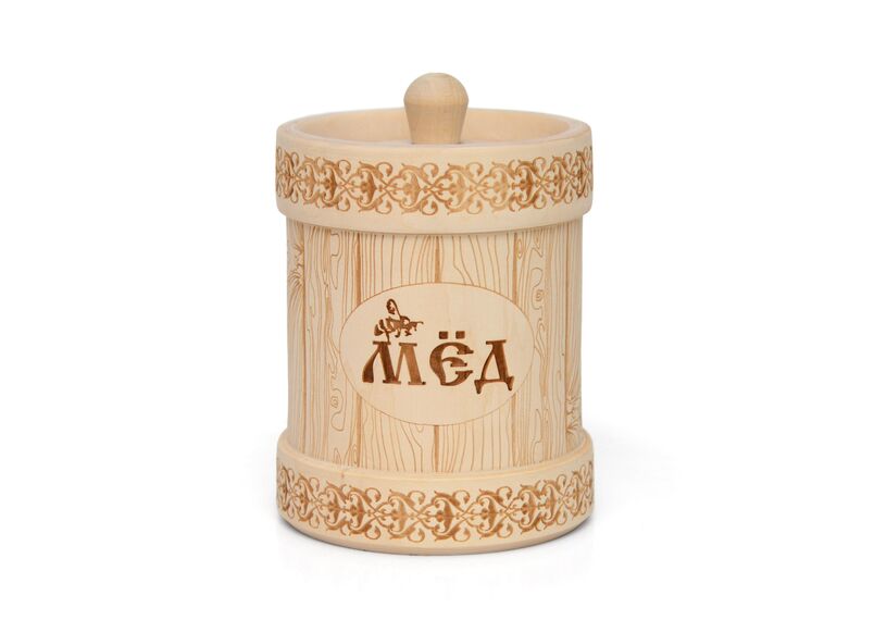 Туесок деревянный для меда. Объем бочонка 0,7 л. Вмещает 1 кг меда. Выточен из цельного куска липы и покрыт внутри натуральным пчелиным воском. Приятный на ощупь. Пользоваться одно удовольствие!