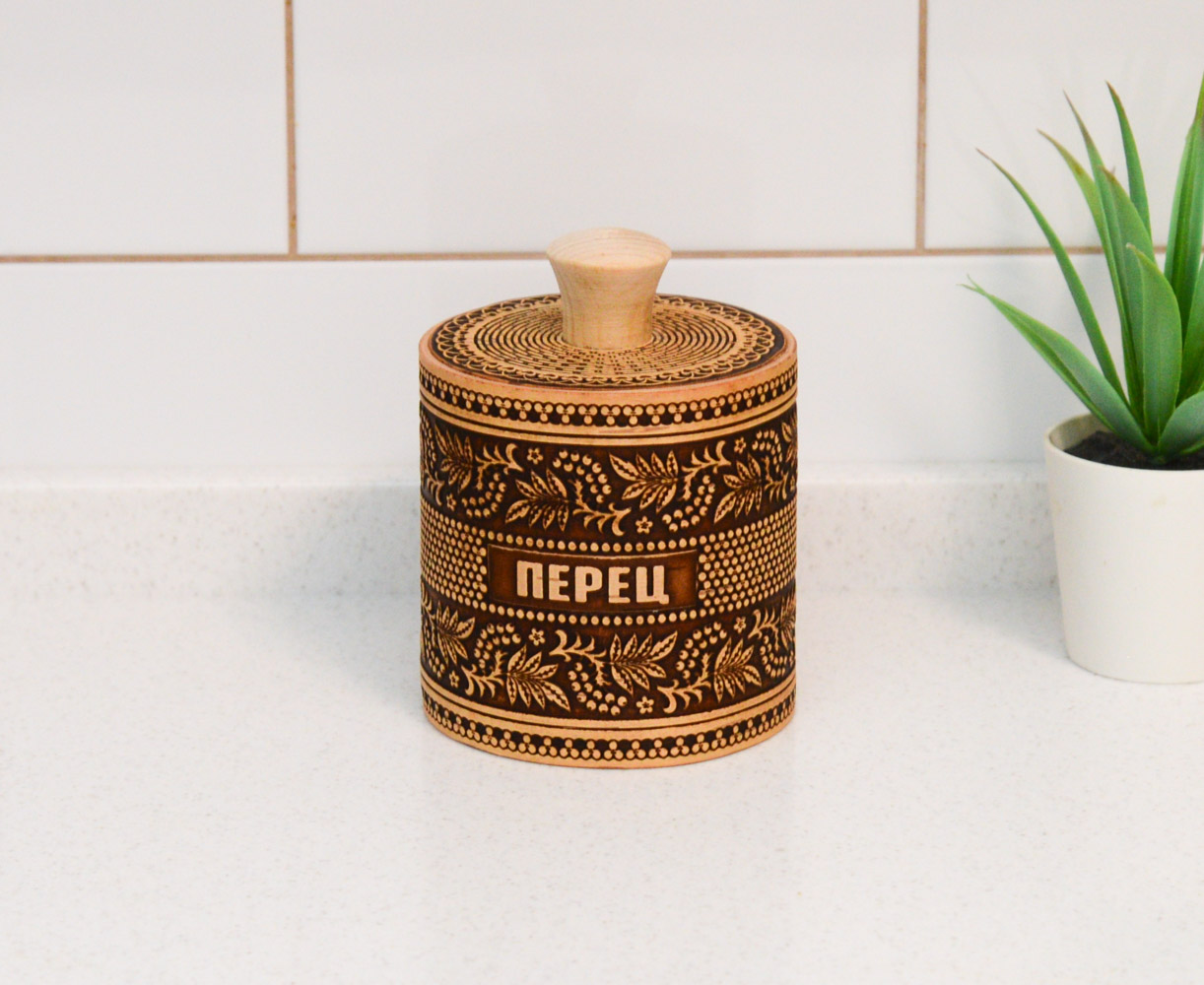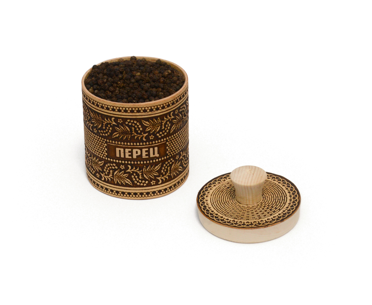 Туесок из бересты небольших размеров с надписью перец. Отличное качество. Ручная работа.